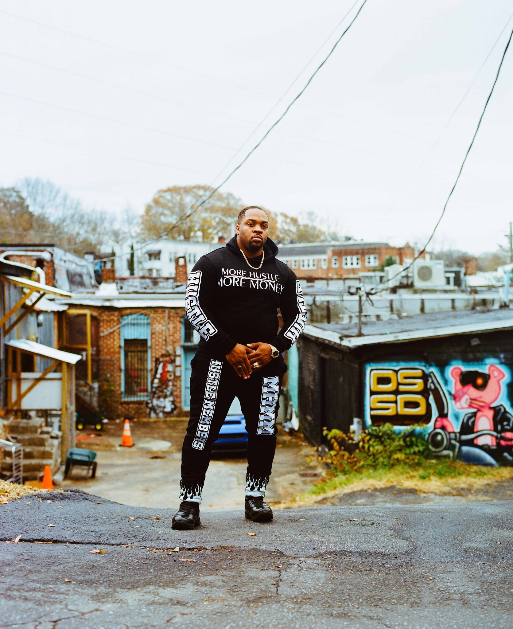 The Black Flame Tracksuit is crafted for comfort, style, and all-season versatility. True to size with a slimmer fit made with soft, durable fleece terry fabric, it fits true to size and delivers the perfect balance of warmth and breathability. Premium embroidery lettering is featured across the chest, arms, and leg logos, adding elevated detail throughout the set. The pants are finished with bold DTG-printed flame graphics along the bottom cuffs for a striking touch. Designed to be worn anywhere, anytime, this tracksuit brings effortless confidence and standout style.